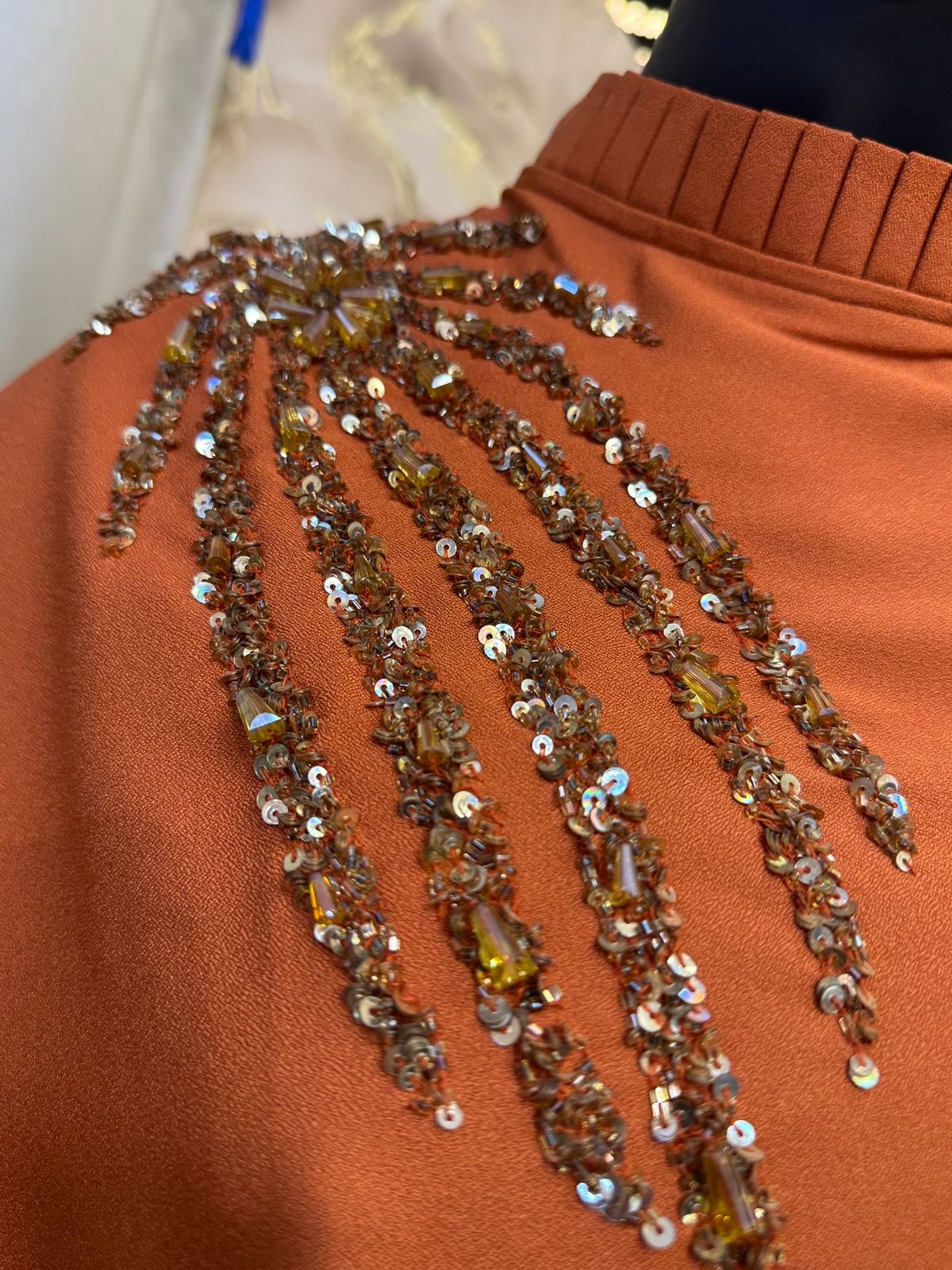 Perfect for festive gatherings, evening parties, or statement occasions, this set blends modern elegance with ease of wear. Choose between vibrant pop green or striking orange to stand out with confidence and charm.
