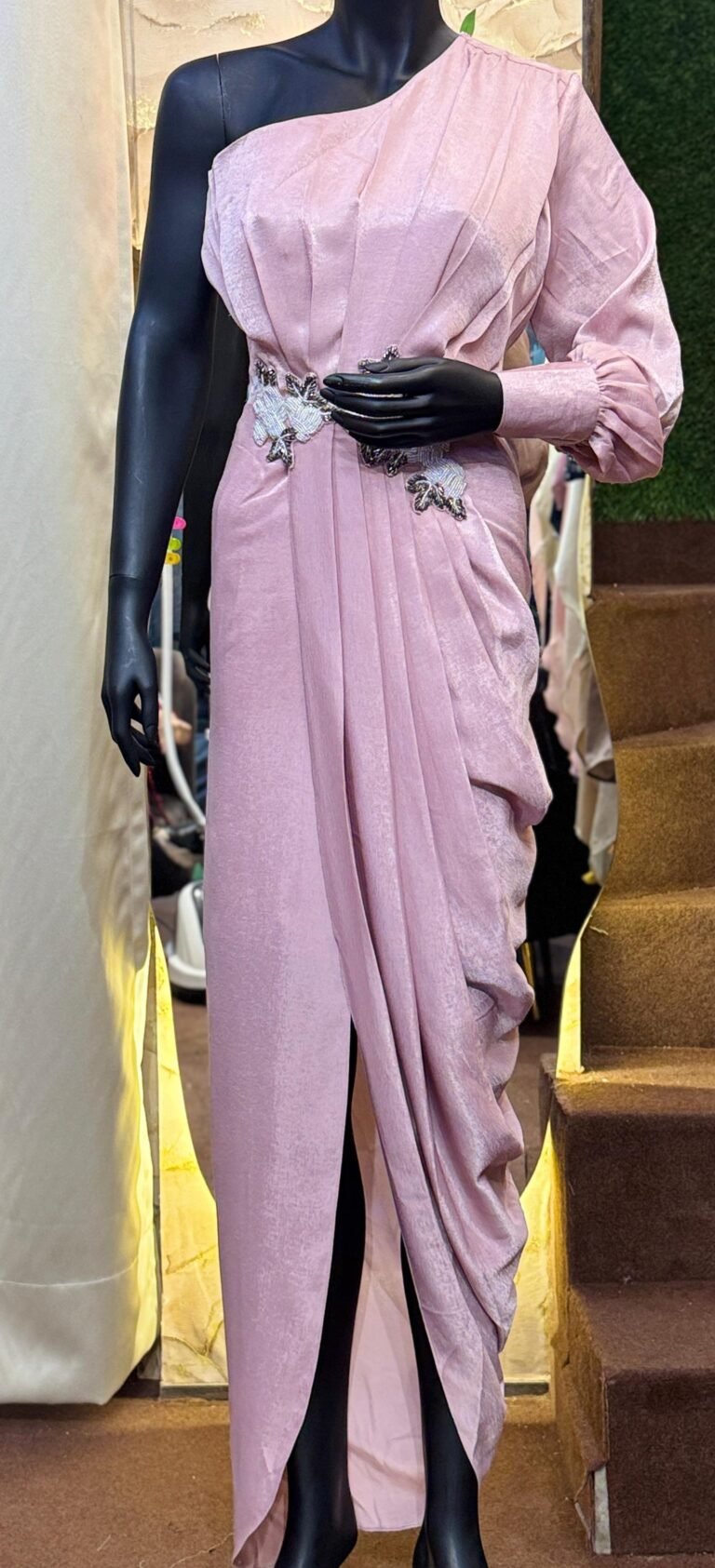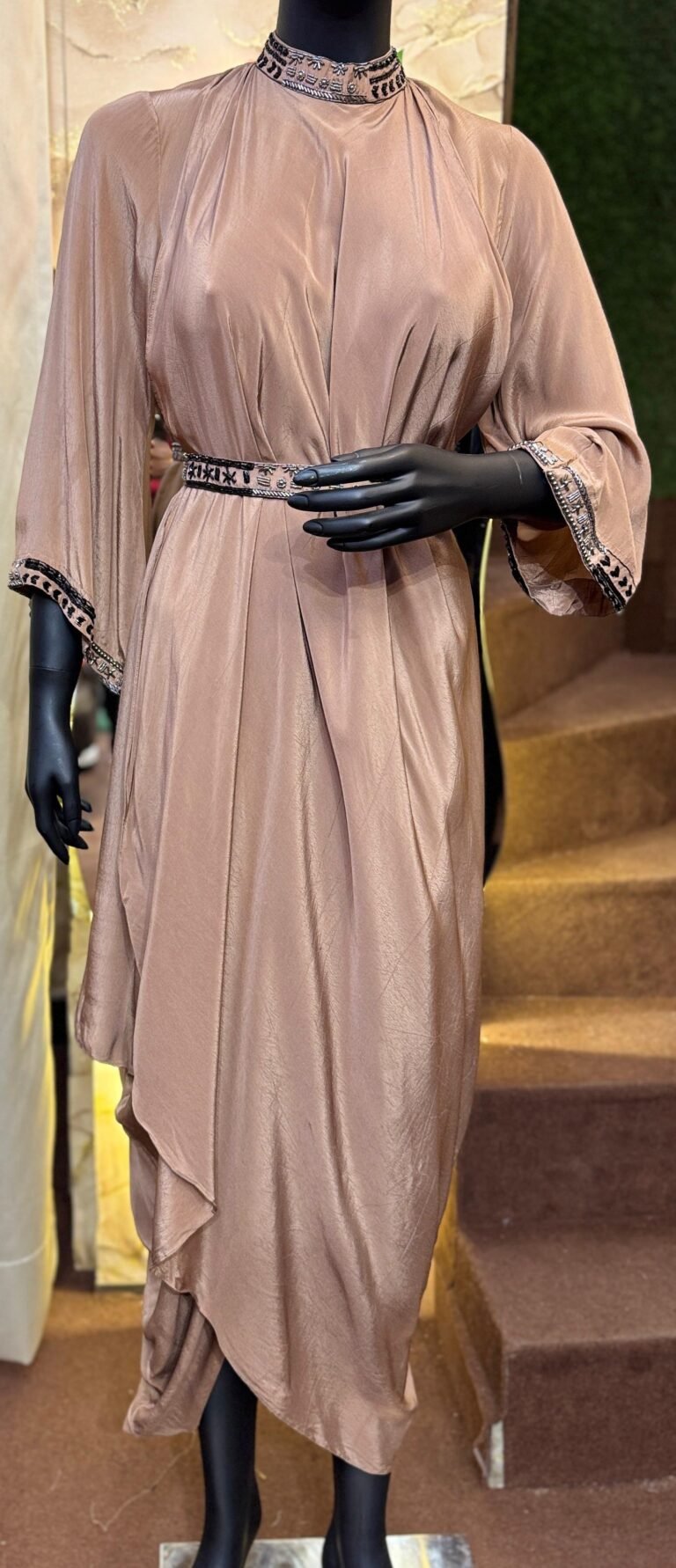 Electric Blue Embellished Drape Dress – Free Size up to 42